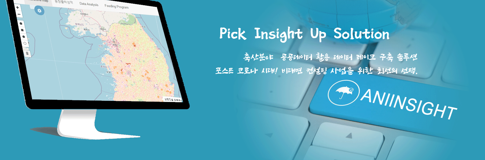 서비스 목표 - 최근 축산 관련 공공데이터개방, 정보 통신 기술 발달 등으로 데이터를 수집하고 처리하는 능력이 높아지면, 축산 분야에서도 빅 데이터가 보편화되어 유관기관들이 제공하는 다양하고, 방대한 량의 축산 기반 데이터를 통합 분석하여 상관 모델을 구축하고, 이를 산업에 적용하는 연구들이 활발히 이루어 지고 있습니다.저희 회사도 이러한 트랜드에 맞춰 한우 분야를 시작으로 데이터 레이크 구축하는 사업을 시작하였습니다. Pick Insight Up Solution 은 한우 생산 산업의 가치사슬에 있는 유관 기관들이 제공하는 다양한 정보를 효과적으로 추출 수집하여 한우 데이터 수원지를 구축 하고, 한우 데이터 수원지 생태계 내 다양한 도구를 활용하여 데이터를 가공 분석 시각화 하고 이를 통해 고품질 한우 생산을 위한 새로운 통찰을 제공하는 솔루션입니다.